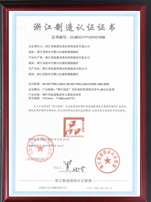 浙江制造認證證書