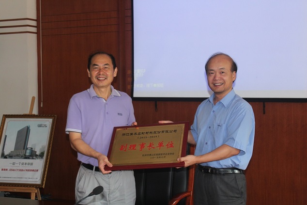 隨后,蕭山區高新技術企業協會理事長馮光先生向我司董事長孫錦龍頒發了“杭州市蕭山區高新技術企業協會副理事長”牌。