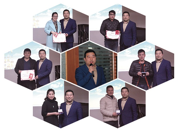 在聽取了分部經(jīng)理、銷售員代表的發(fā)言后,主持人宣讀了2016年在營銷工作中表現(xiàn)突出、業(yè)績優(yōu)異的各項先進人員名單,以及2016年金牌、銀牌銷售員獲得者名單。董事長兼總經(jīng)理孫錦龍、內(nèi)貿(mào)副總經(jīng)理俞江帆分別向獲獎人員頒發(fā)了榮譽證書、徽章和獎金。