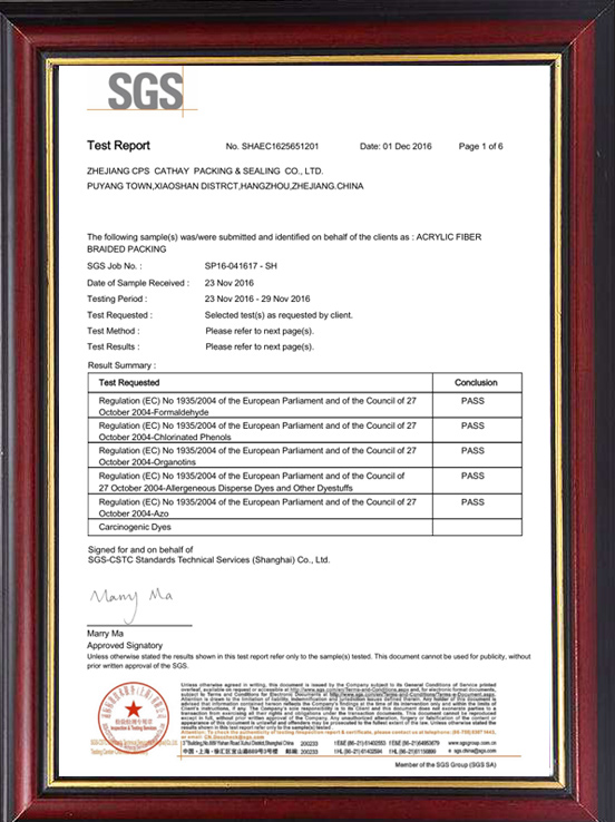 阿克力紗編織盤根EU食品級檢測報告(蕭星)