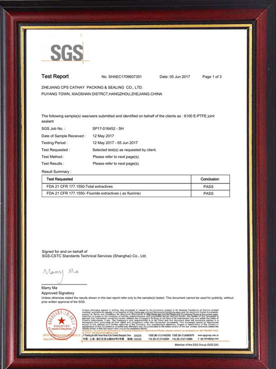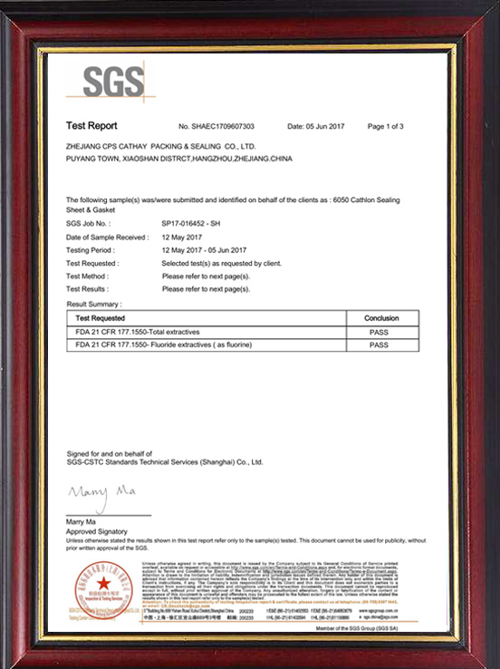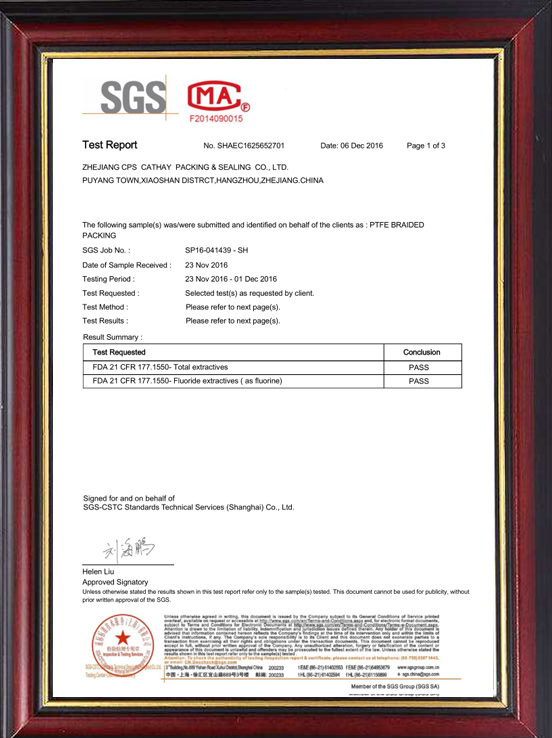 聚四氟乙烯盤根FDA檢測報告(蕭星)